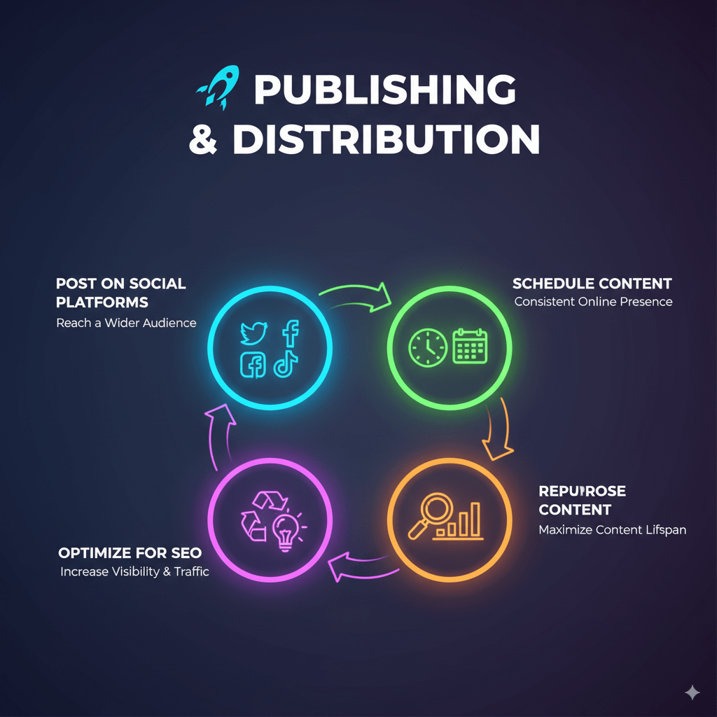 Publishing & Distribution ✨ Publishing & Distribution is the stage where content goes live and reaches the right audience at